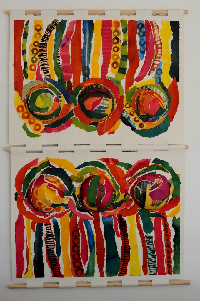 The following 3 pieces were painted with locally sourced and ground pigments.